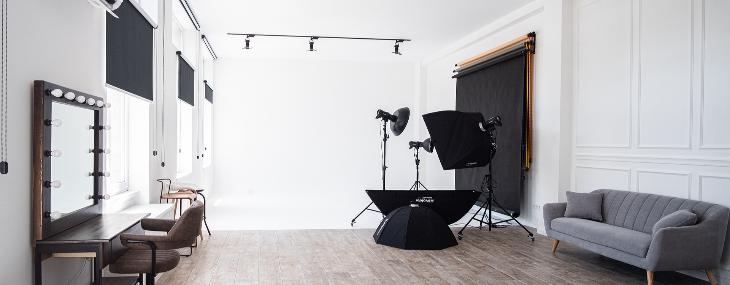Spacious and sunlit studio for all types of photo works with a total area of 100 sq. meters complete with white cyclorama. Gigantic windows and professional equipment allow you to work both with natural light and studio impulse light.
